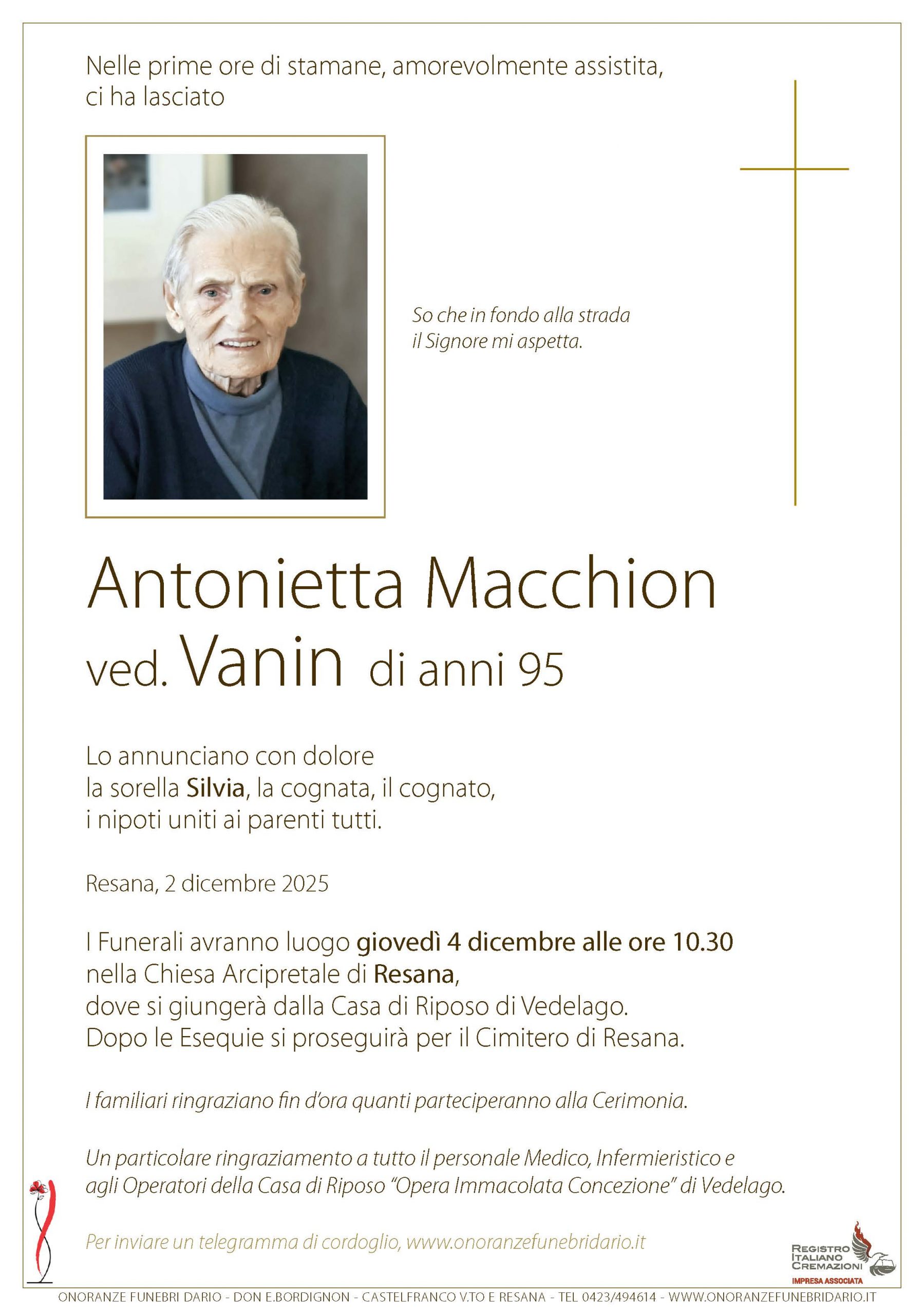 I funerali avranno luogo nella Chiesa Arcipretale di Resana |