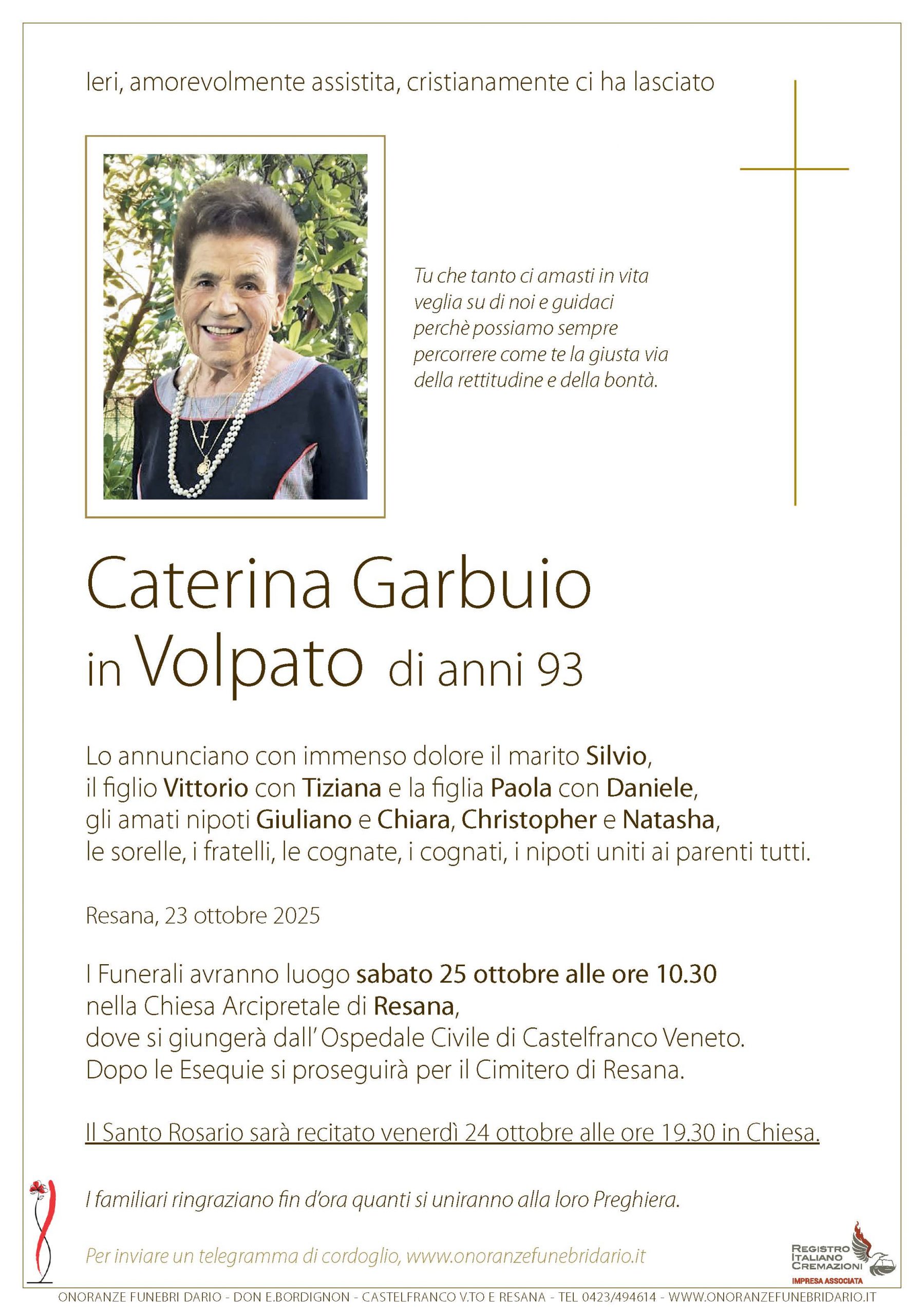 I funerali avranno luogo nella Chiesa Arcipretale di Resana |