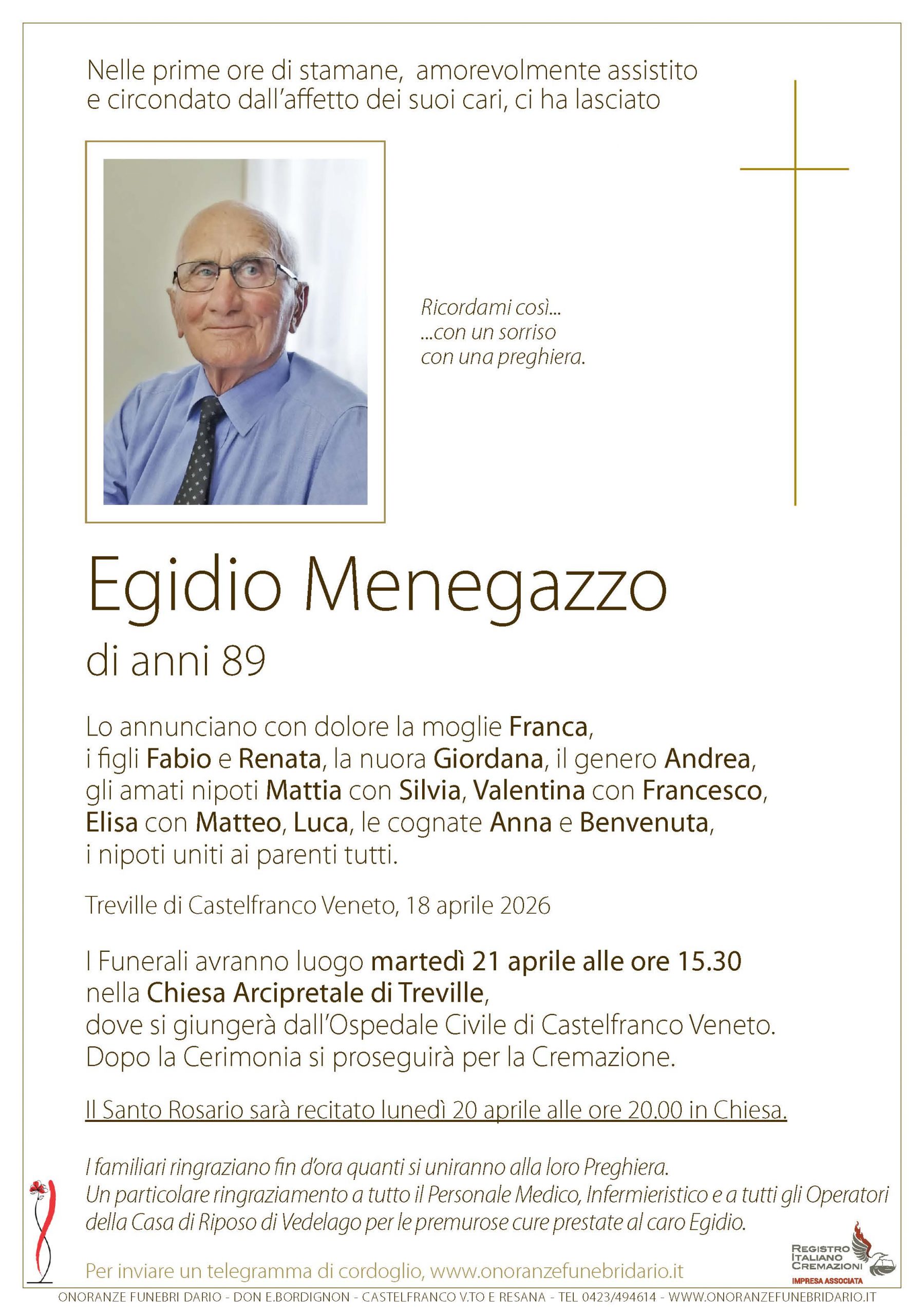 I funerali avranno luogo nella Chiesa Arcipretale di Treville |