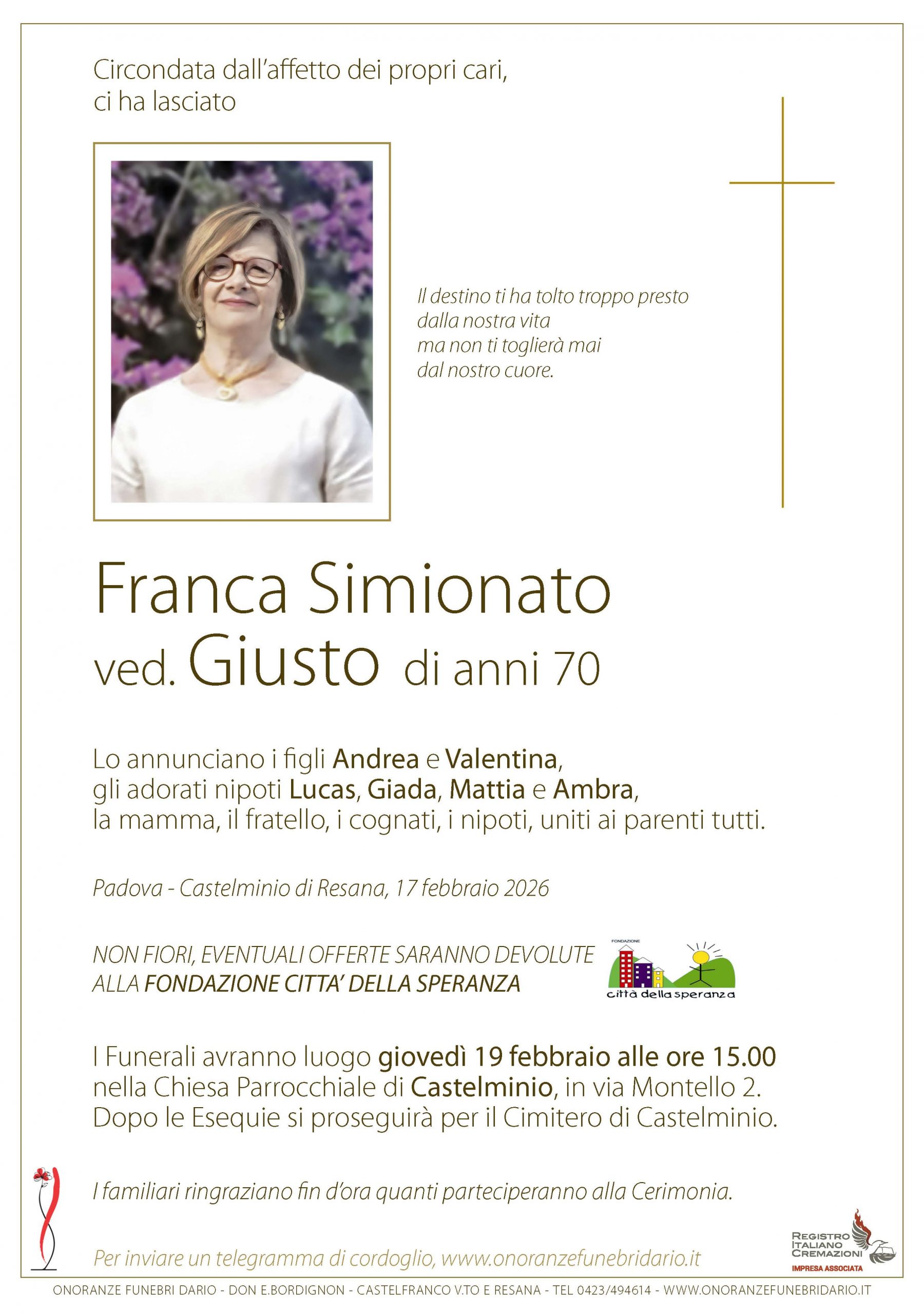 I funerali avranno luogo nella Chiesa Parrocchiale di Castelminio |