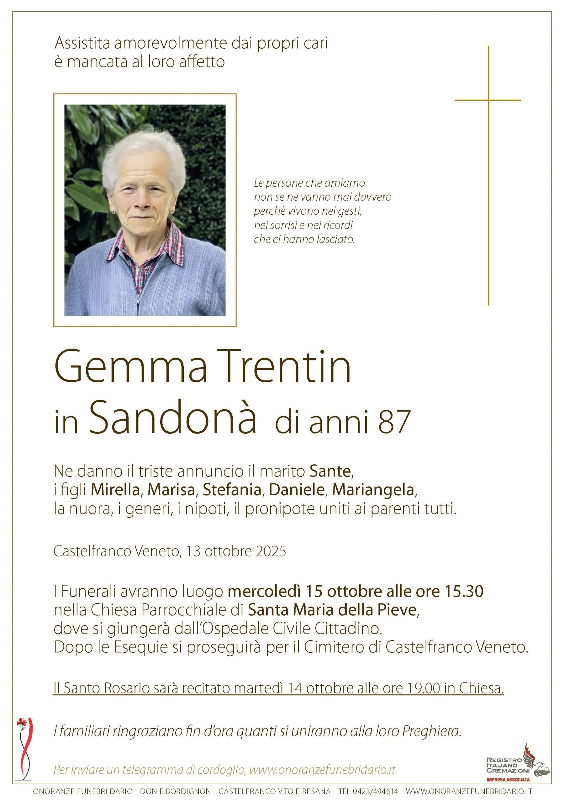 I funerali avranno luogo nella Chiesa Parrocchiale di Santa Maria della Pieve |