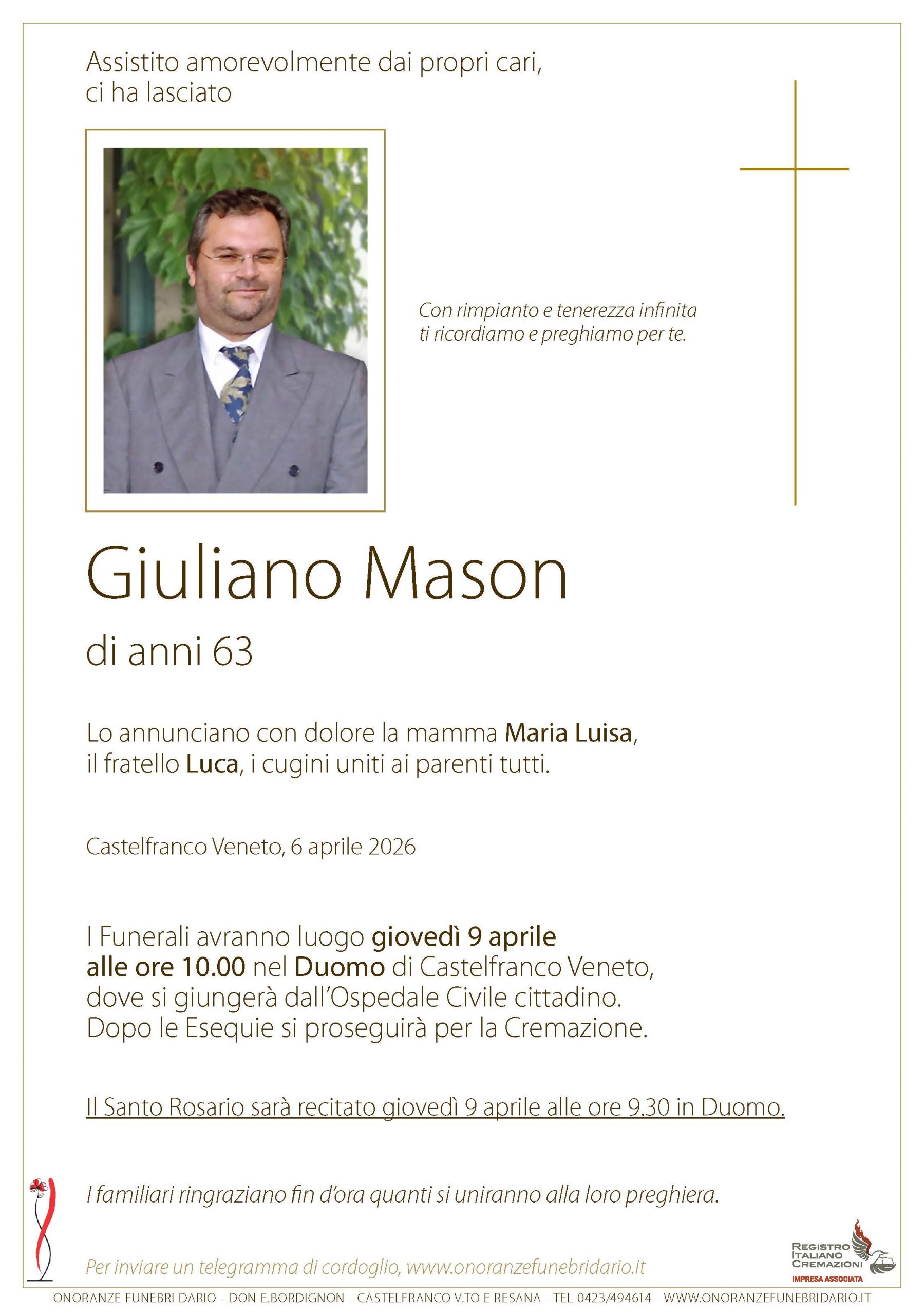 I funerali avranno luogo Duomo di Castelfranco Veneto |