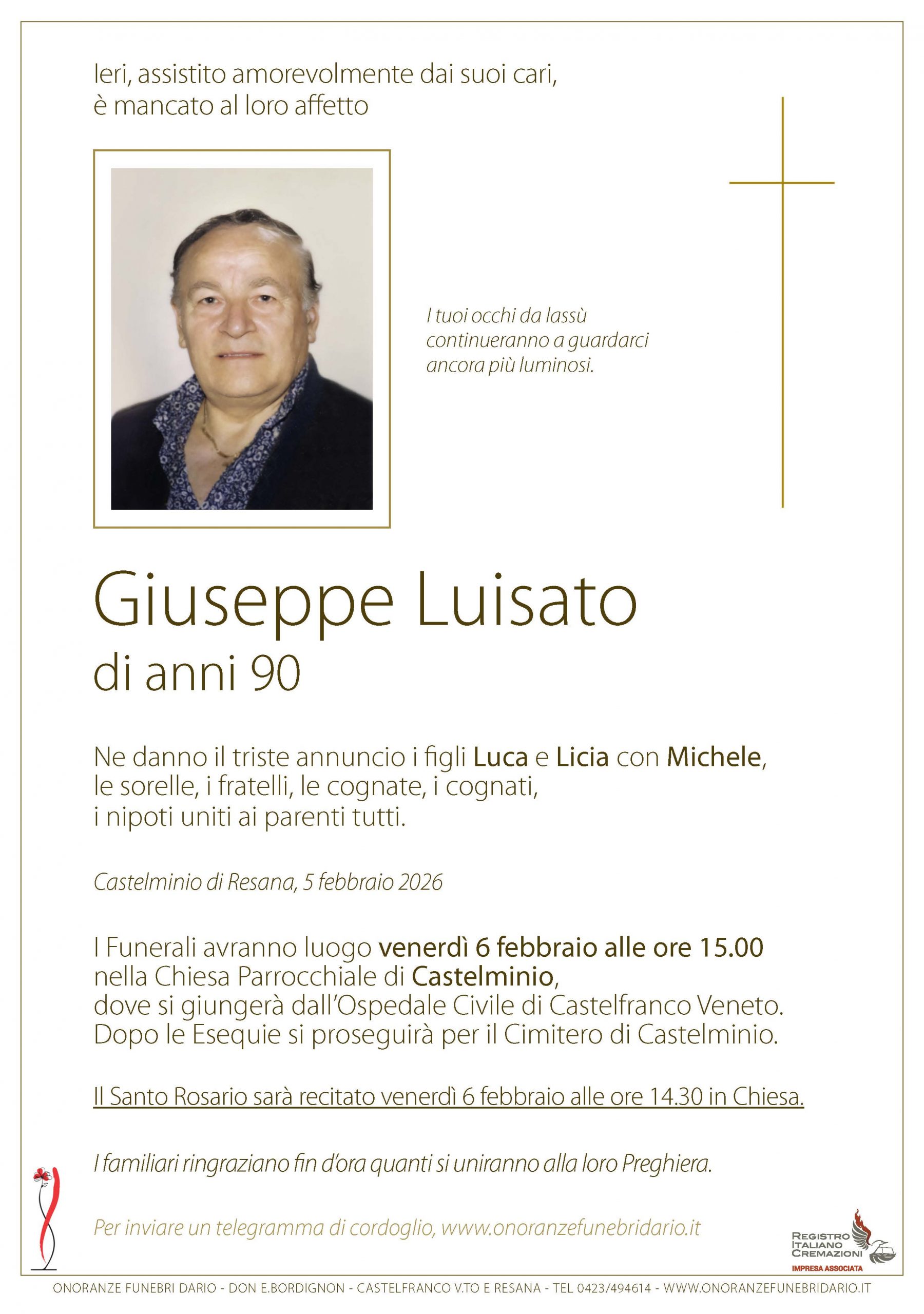 I funerali avranno luogo nella Chiesa Parrocchiale di Castelminio |