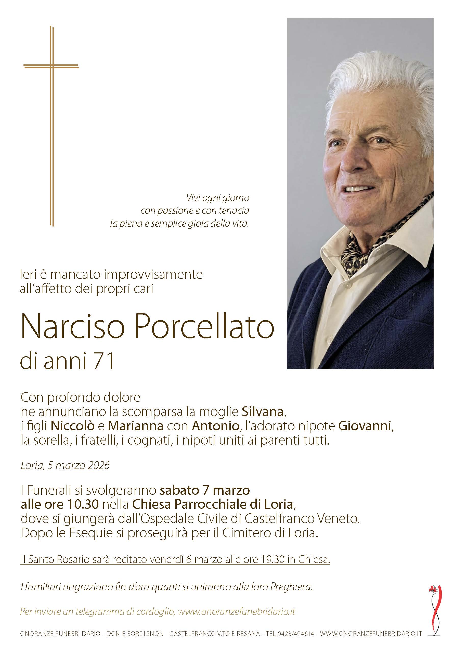 I funerali avranno luogo nella Chiesa Parrocchiale di Loria |