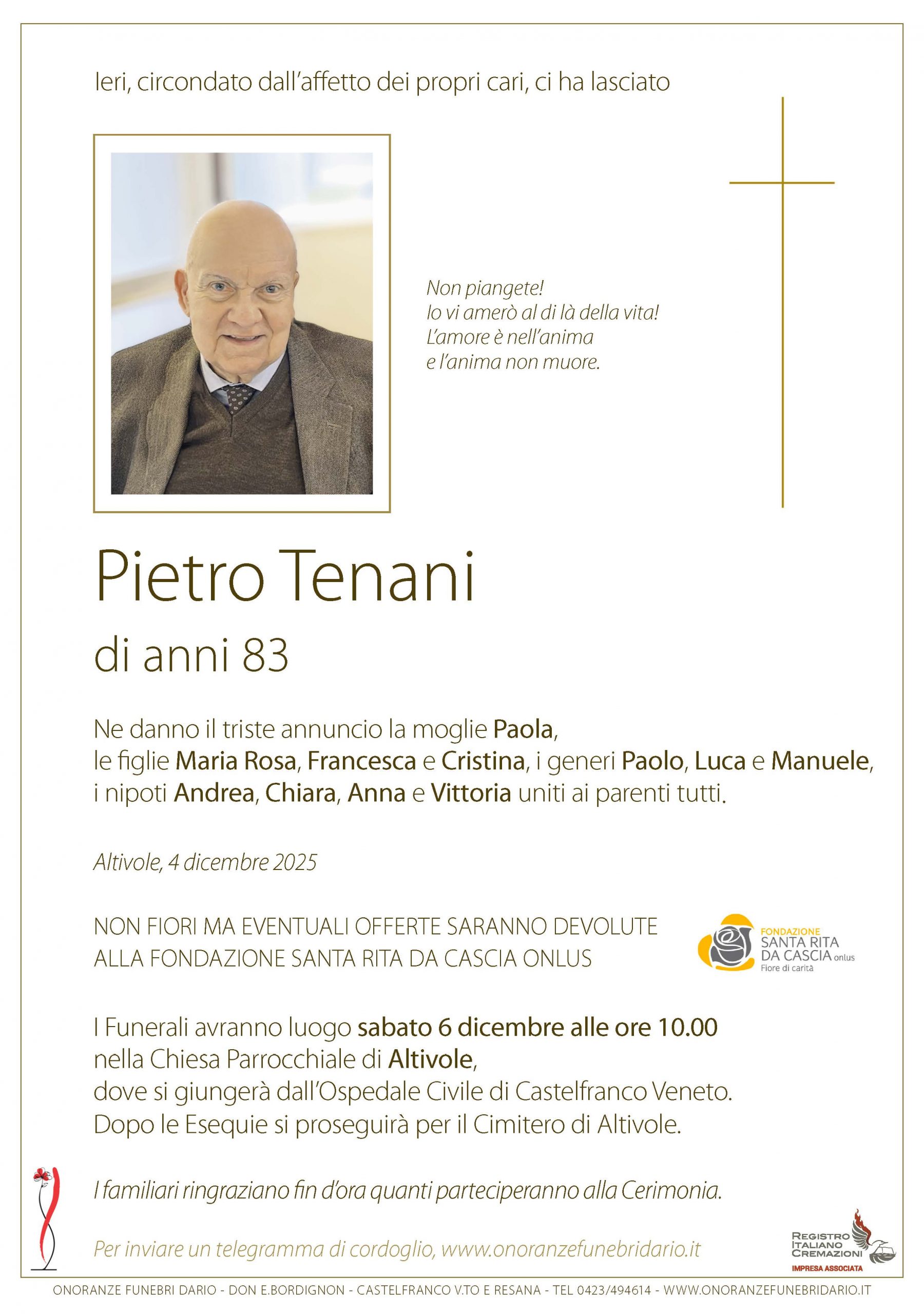 I funerali avranno luogo nella Chiesa Parrocchiale di Altivole |